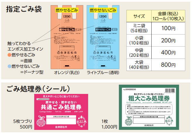 「燃やせるごみ」「燃やせないごみ」「粗大ごみ」の排出には、ごみ処理手数料が必要です。